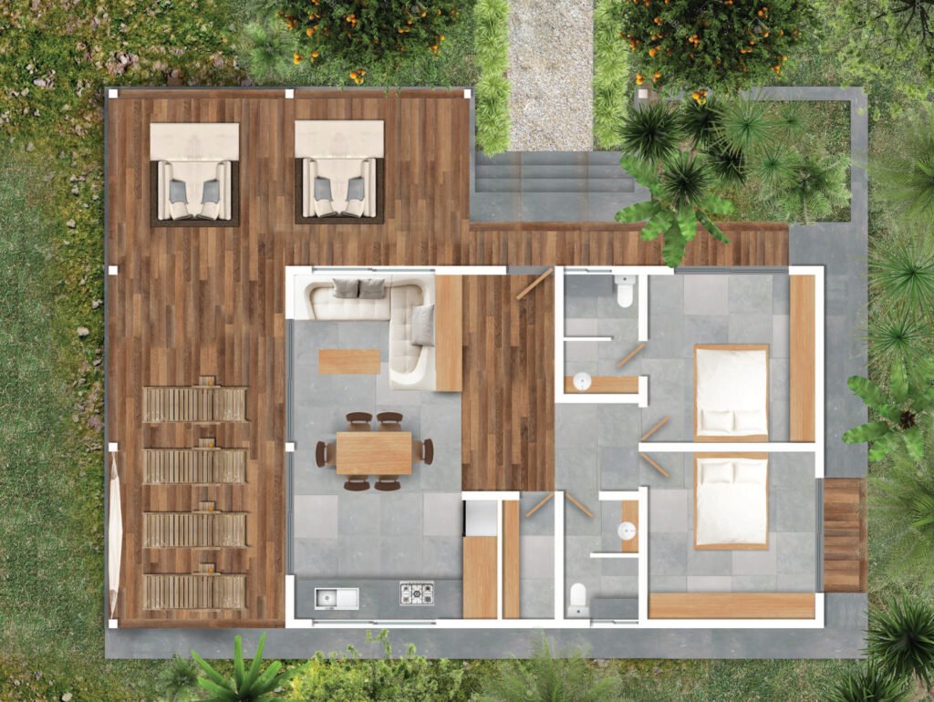 ESCAPE designed these two bedrooms balinese style bungalows located a few minutes away from San Juan del Sur. Two of these model bungalows have already been built.