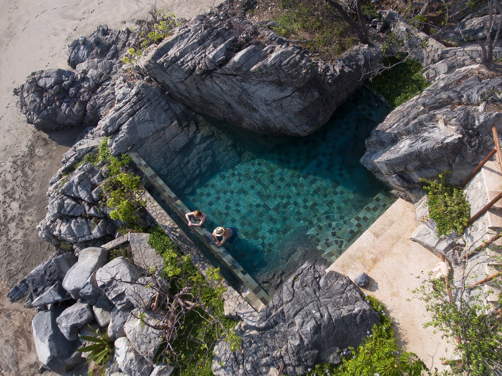 We fell in love with this exceptional gem overlooking the Pacific Ocean. Nestled into the rocks, this beautiful beach getaway fits perfectly in its environment.